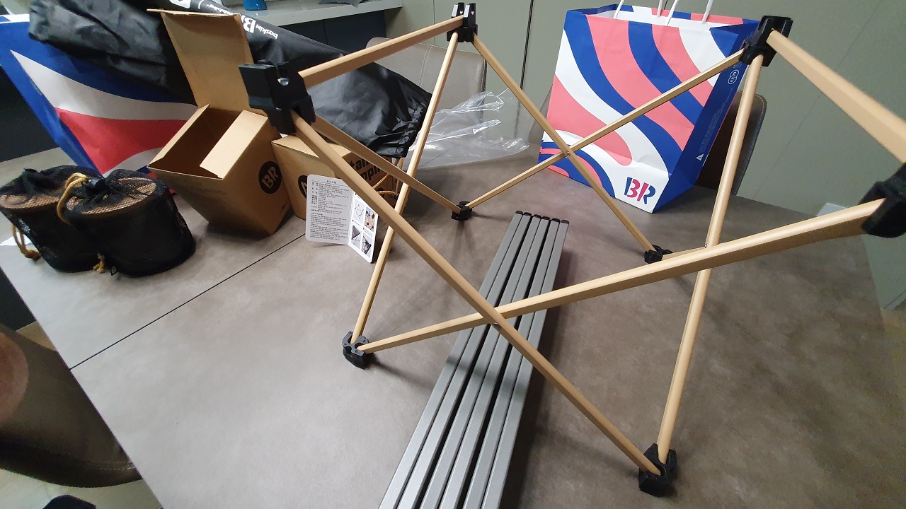 배스킨라빈스 캠핑 굿즈 리뷰 - 티타늄 머그컵과 캠핑 롤 테이블