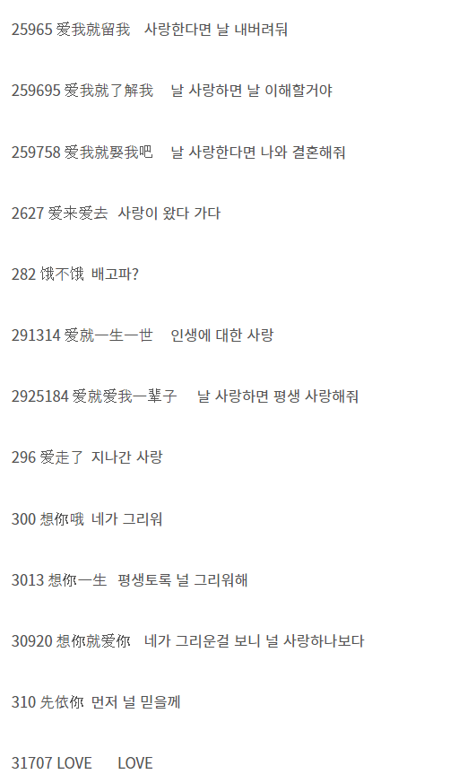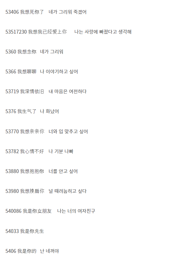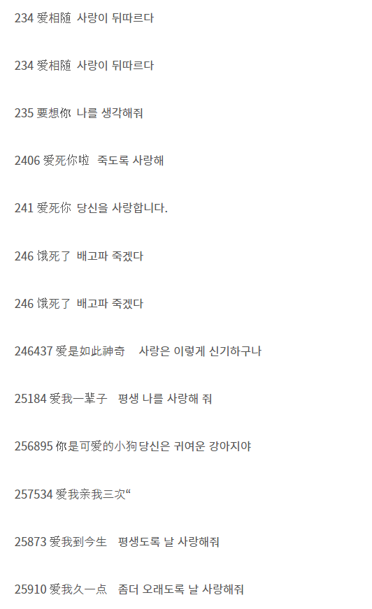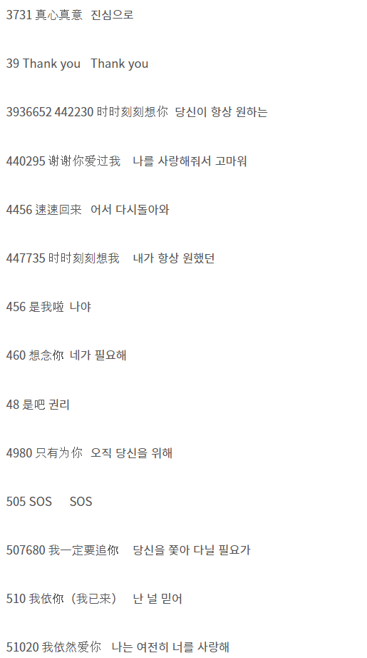 - 92401: '就是爱你一'로 발음되어 '그냥 널 사랑해'라는 의미로 사용됩니다.